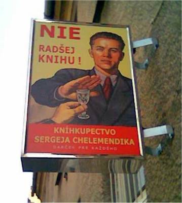 No, nebuď tak vztahovačnej – to byla jenom reakce na to, jak jsi napsal, že jsi prodal pár knih do antikvariátu a tu trošku obdržených peněz PROPIL. Bylo to myšleno z legrace, jak napovídal i smajlík na konci věty. Jinak samozřejmě vím, že jsi děsný intelektuál – viz filozofický slovník v tvé knihovně :-)))