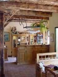 Interiér restaurace je zařízen jako příjemný obývací pokoj. Kombinace dřeva,