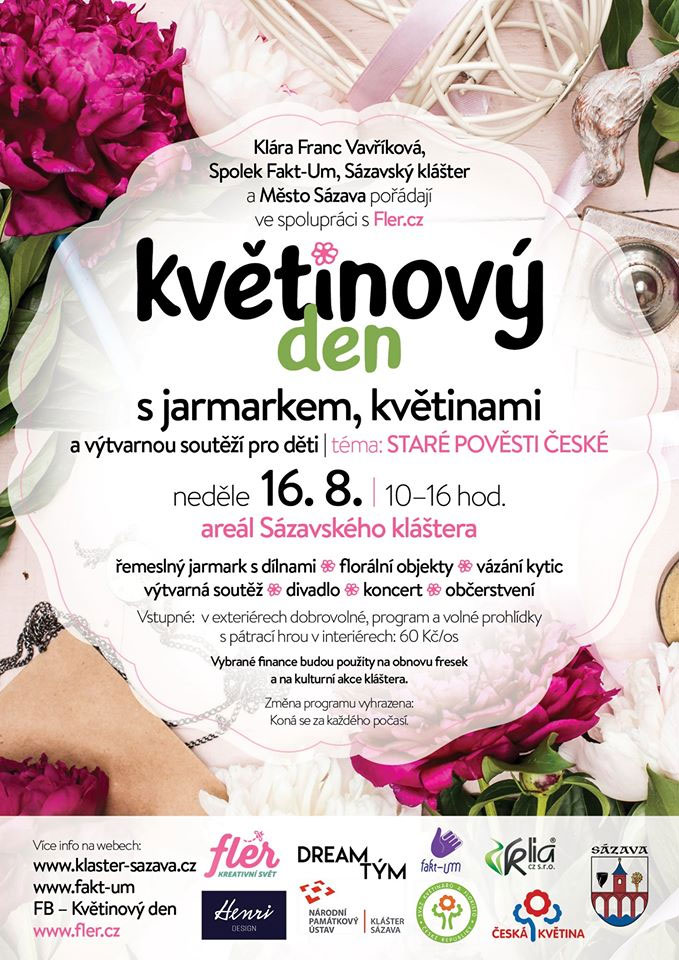 Neděle 16.8. od 10 do 16 hod Areál Sázavského kláštera Květinový den s jarmarkem a výtvarnou soutěží pro děti