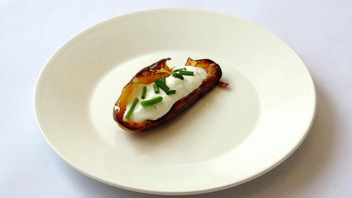 Na každou horkou bramborovou lodičku dejte lžičku zakysané smetany a posypejte jemně nakrájenou pažitkou. Vypadá to krásně, voní to po čerstvosti a chuťově to celé báječně zaoblí.