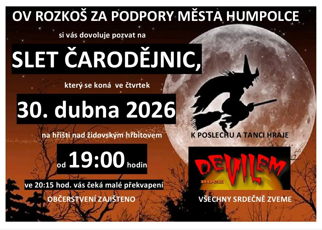 Již tento čtvrtek se koná pálení čárodejnic. V našem článku naleznete informace, kam všude můžete v Humpolci a okolí vyrazit na oficiální akce.