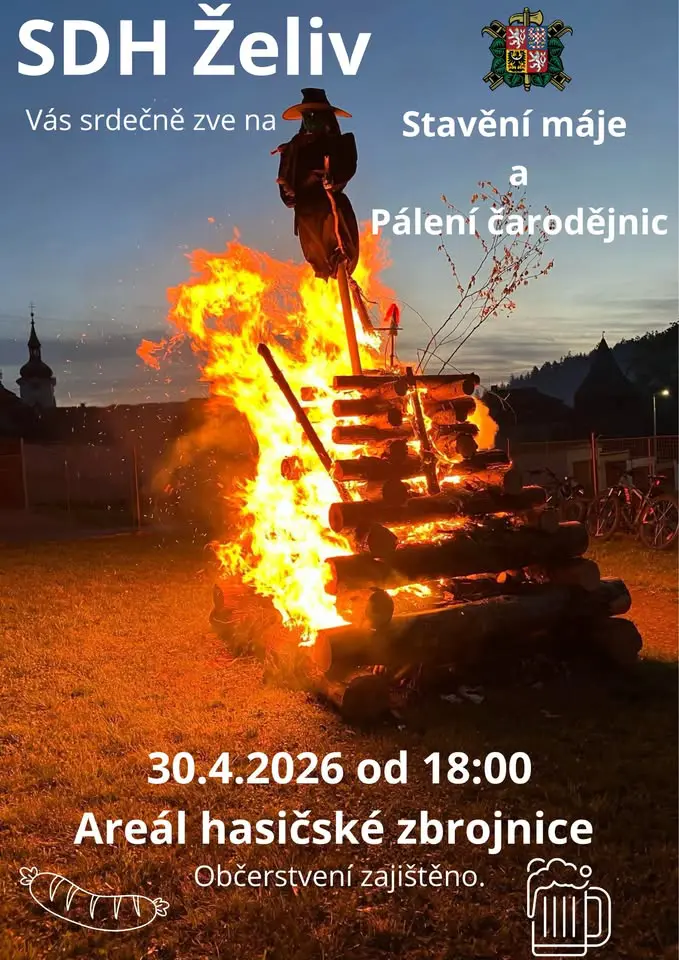 Stavění máje a pálení čarodějnic 2026 v Želivě
