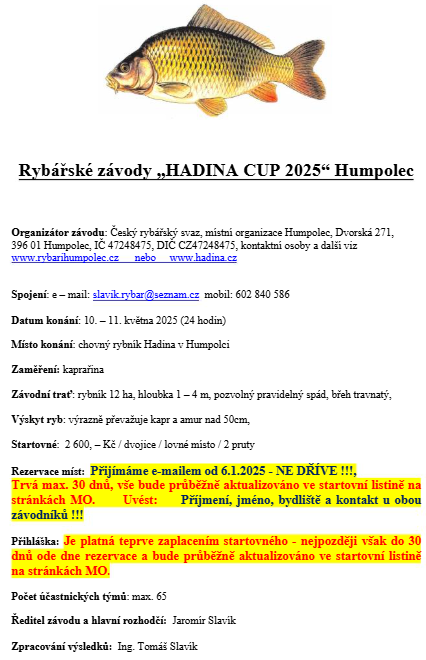 ČRS MO Humpolec a město Humpolec zvou širokou veřejnost na tradiční rybářské závody dvojic.