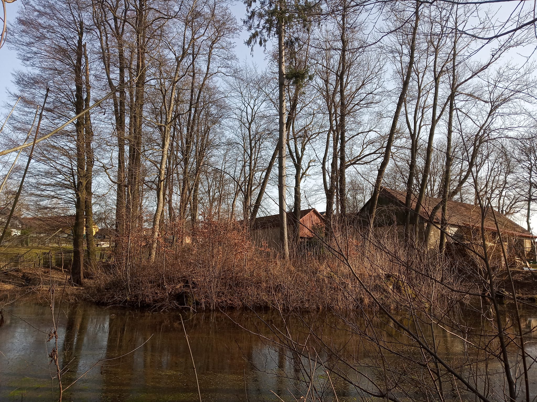 Příkop se však dochoval dodnes, stejně jako rybníček nad ním, na návsi, po jehož hrázi vede cesta k dochovanému tvrznímu dvoru.