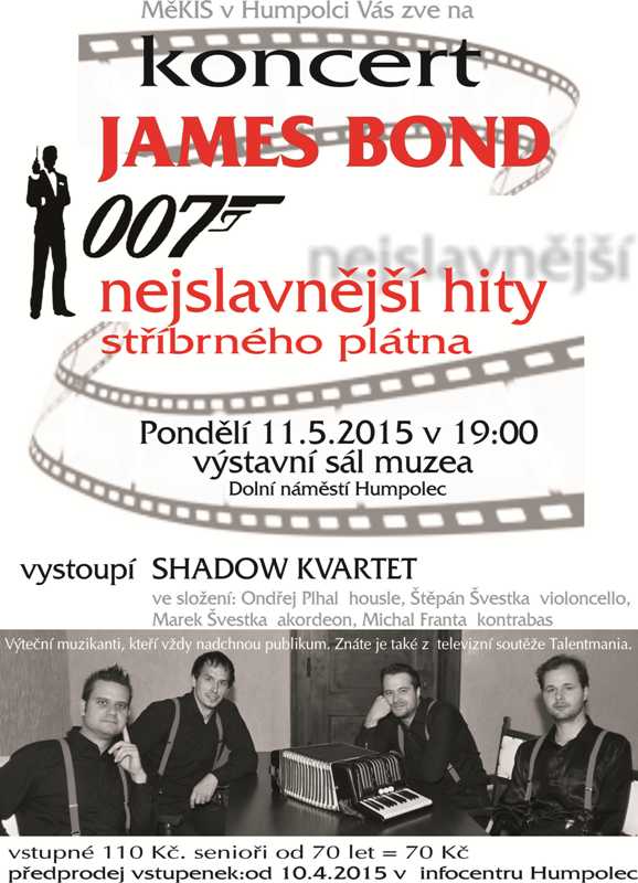 MěKIS v Humpolci vás zve na koncert Shadow quartet: „James Bond – nejslavnější hity stříbrného plátna