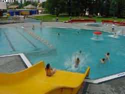 může přímo u areálu asi 50 aut a další v přilehlých ulicích. Bazén se nakonec po