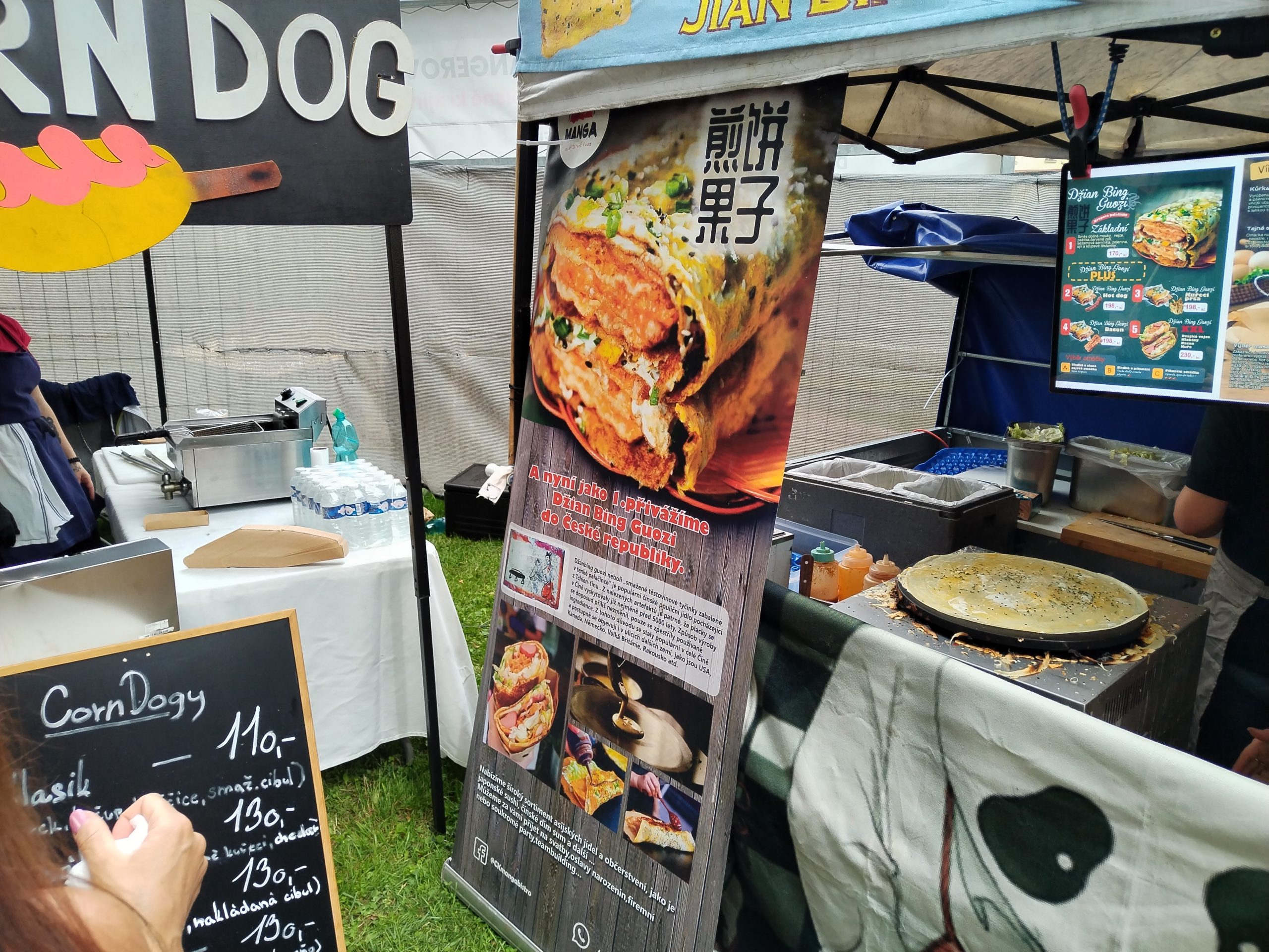 Manga Bistro připravovalo speciální čínské palačinky Jianbing, což je tradiční čínské pouliční jídlo. Ti tu byli i na předchozích ročnících, ale my jsme je nikdy neochutnali. To jsme museli změnit a museli jsme je prostě ochutnat, jelikož v Čechách je to docela rarita. Palačinky se připravují podobně jako klasické francouzské crapes, akorát do nich jde následně smažené vajíčko, zelenina, sójovka, chilli omáčka. To je základ. Ale dát jste si ho zde mohli i buď s nějakým tím masíčkem, nebo slaninkou. My jsme si vybrali tu verzi se slaninou. Manželce v nich vadila ta chilli omáčka. S tou já problém nemám a popravdě mě ta palačinka hodně dost chutnala. Zase něco nezvyklého, co si ne hned tak někde dáte, pokud tedy zrovna nejste v Číně. Za mě velice milé překvapení.