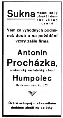 Pane Motejl, muj pradeda Adolf Havelka pracoval v Humpolci jako soukennik a v roce 1940 sepsal vse co si pamatoval z tehdejsi techniky. Strojem psanych asi 50 stranek mam zde u sebe. Mel by jste zajem o kopii?