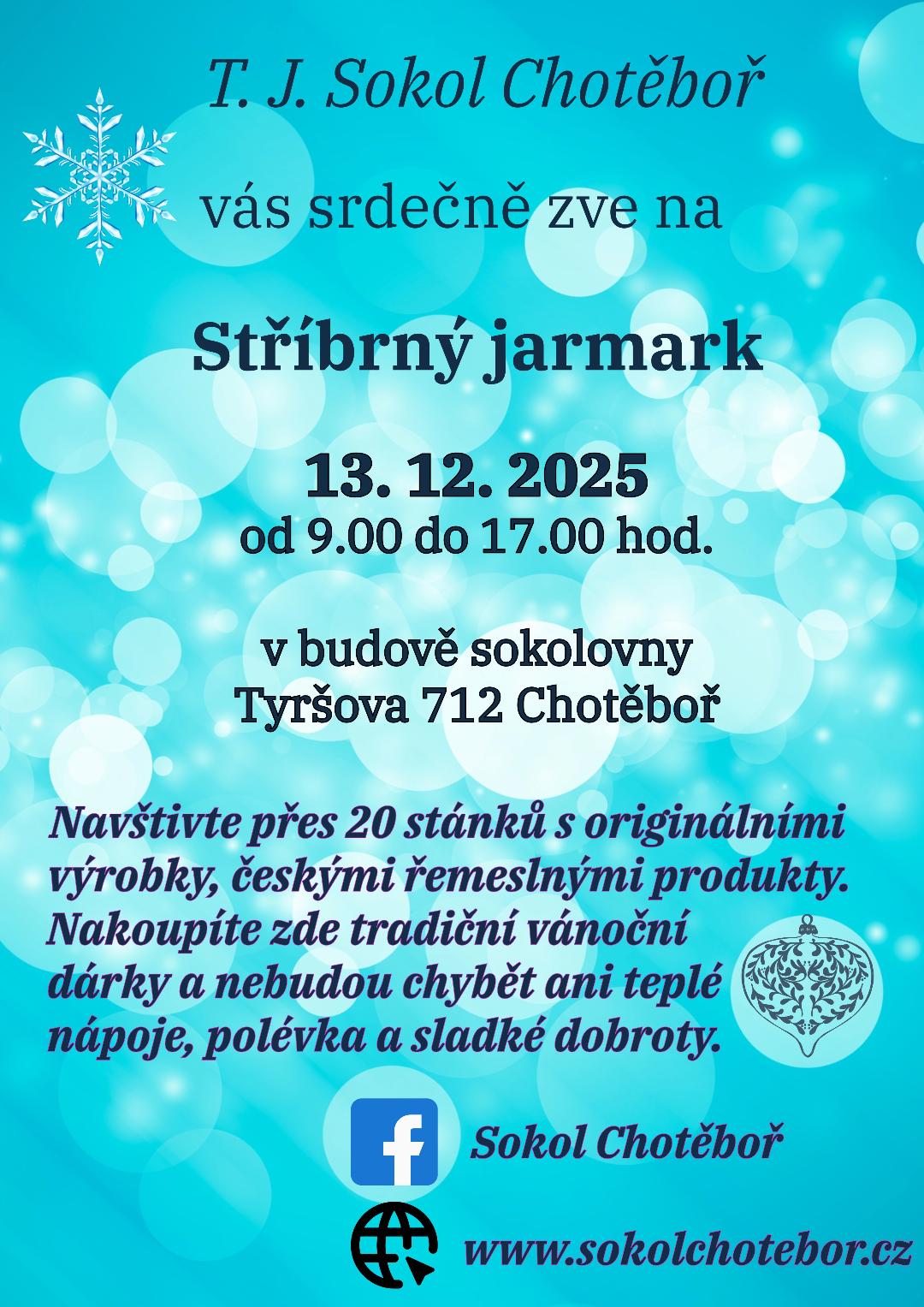 Letos poprvé se v sokolovně v Chotěboři bude konat Stříbrný jarmark dne 13. 12. 2025.