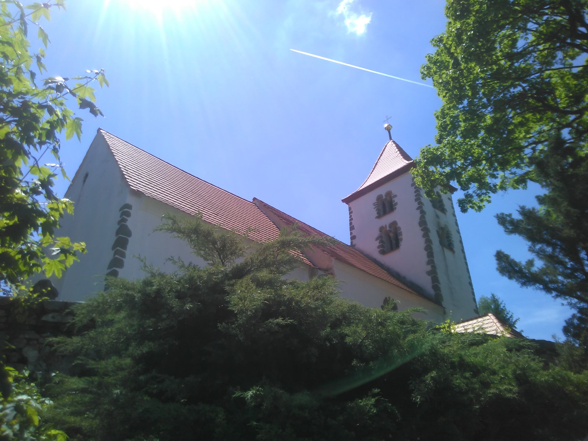 Ale třešnička, to byl kostel v Újezdci, jeden z nejstarších v Čechách, s románskými základy a krovem ze stromů, pokácených v roce 1445. Je krásnej … Genius loci dýchá z každého milimetru hlíny, z každého listu i z každého kamene. I na hřbitově může být milo.