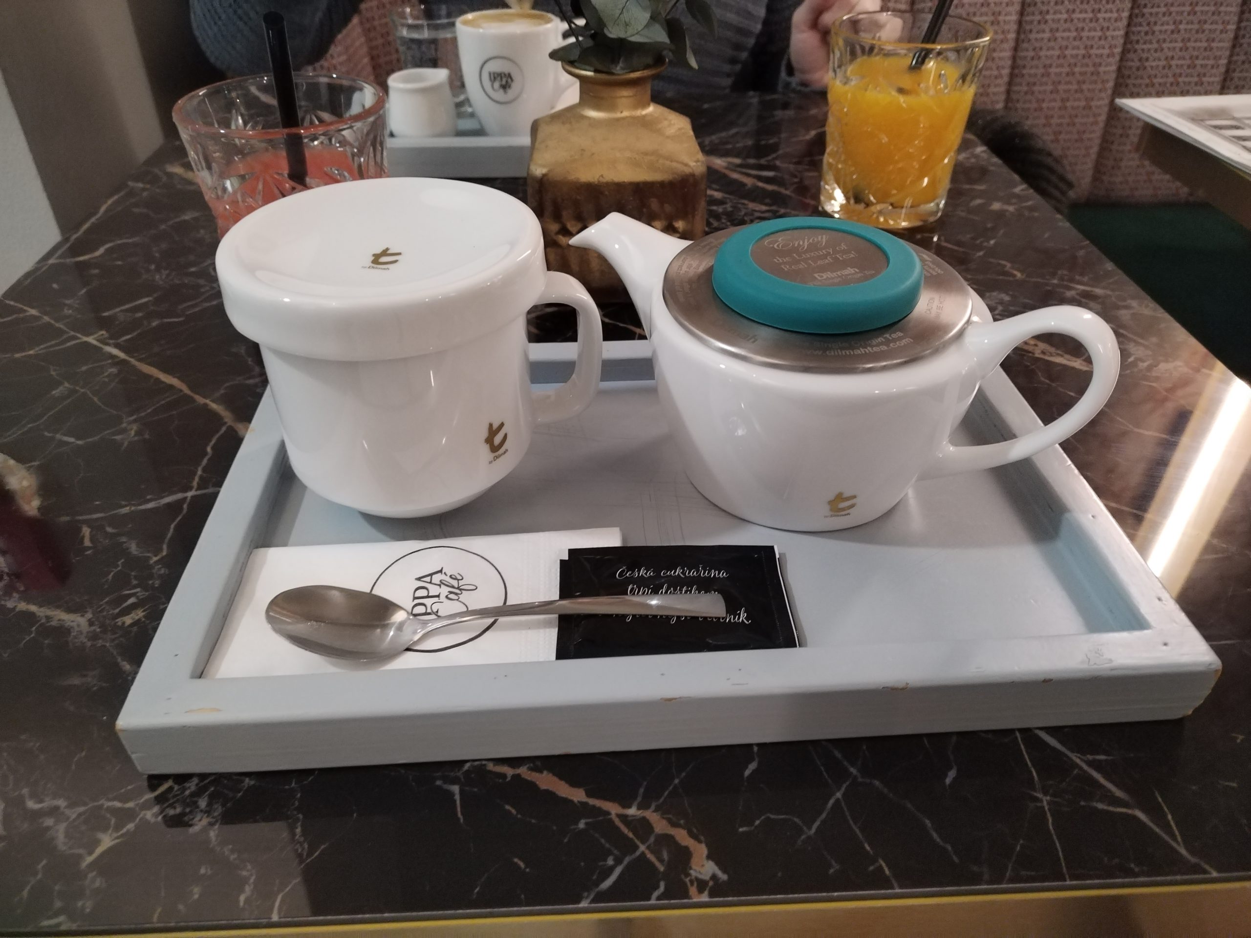 Tento dojem v nás posílila i káva a čaj. Manželka si dala jejich kávu – nezvykle cappuccino Reserva Rainforest blend, a byla naprosto nadšená. Já zvolil jejich Dilmah sypaný cejlonský čaj. No a ten byl také parádní a luxusní a moc jsem si na něm pochutnal. Tady spokojenost a čaji i kávě tady zjevně rozumějí a dělají oboje správně a ve vysoké kvalitě.